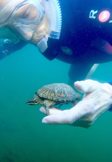 My book recounts how, over the course of eighteen years, as I swam with the pond turtles of Cape Cod, moments of wonder let me see beyond my own concerns and assumptions into the single, great ecosystem which supports us all: nature went from things I could use to beings I could relate to.